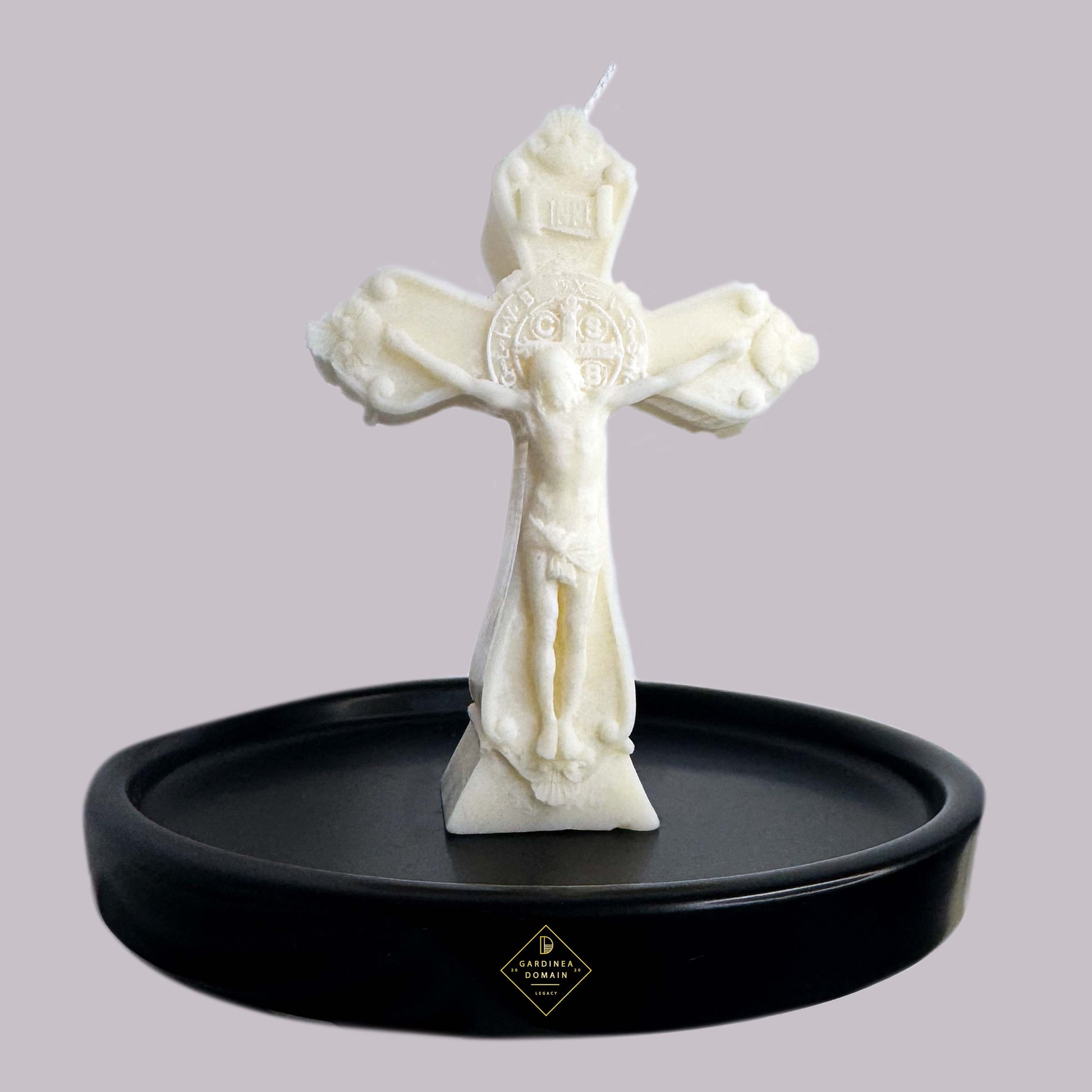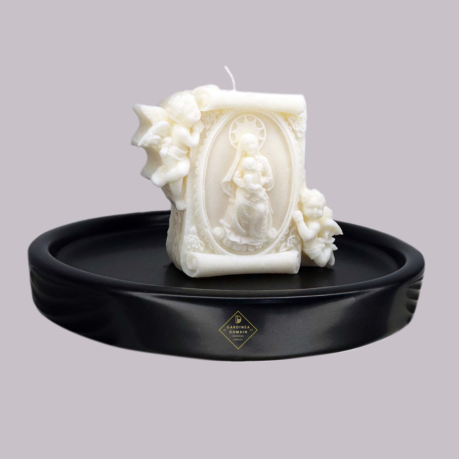 Lumanare tip icoana Fecioara si pruncul cu ingeri Gardinea Domain®, ceara de soia 100% naturala, vegana, Alb inaltime 10 CM