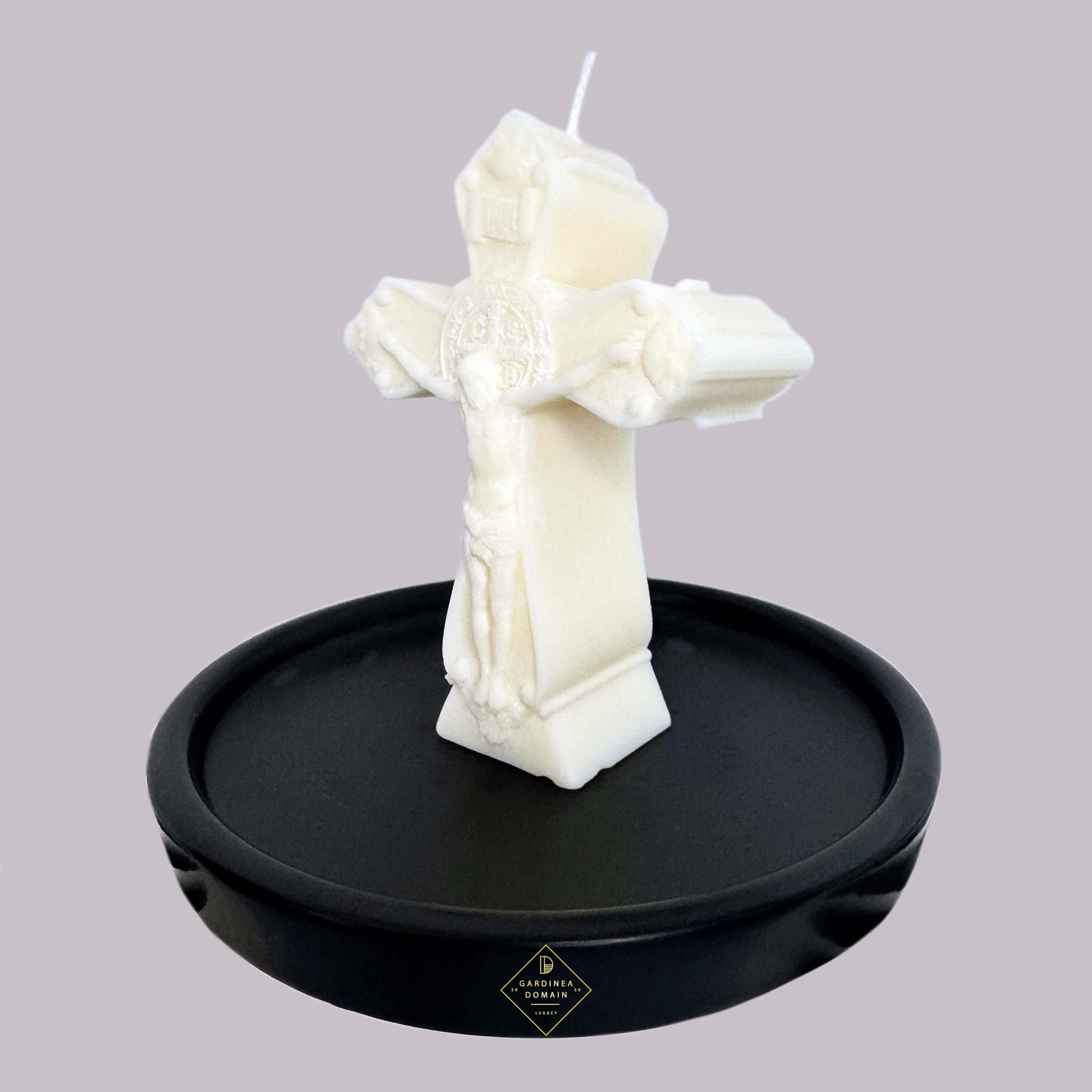 Lumanare tip icoana Iisus pe cruce Gardinea Domain®, ceara de soia 100% naturala, vegana, Alb inaltime 12 CM